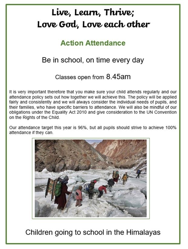 In line with Government guidelines and school policy, we are monitoring attendance regularly and contacting parents with up-to-date attendance information. Please do not be offended if you get such a letter, this is to ensure that you are informed about your child’s attendance and to share ways that we can support this in school should you need it.